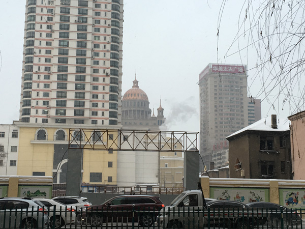2015年12月14日,哈尔滨市香坊区文景街小区,触目所及是一片片被白雪覆盖的废墟,以及虽未被拆毁,但大部分窗户已被砸碎,无法再居住的数栋小楼。