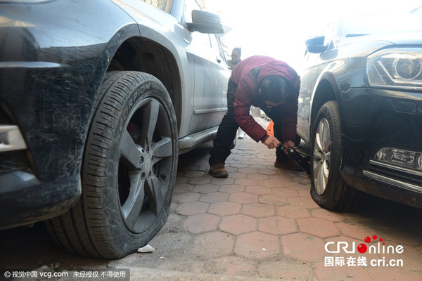 沈阳一小区两百辆车被扎胎 疑有意报复(组图)