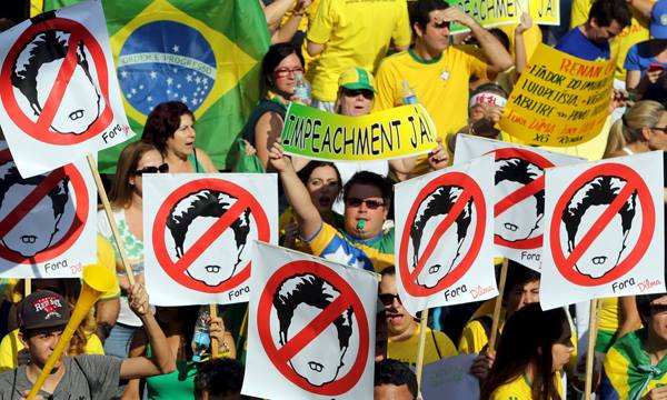 但为何反对派又要勉强提出弹劾申请呢?巴西舆论认为,这是因为在去年大选中,最大反对党巴西社会民主党的候选人以较小差距败北,心里极不服气,总想寻机翻盘。而今年以来,巴西经济连续三个季度衰退,年内可能萎缩近4%。此外,巴西石油公司腐败案持续发酵,有大量执政党政客和政府高官卷入。最新民调显示,目前对罗塞夫执政满意的人仅剩9%,不满意者高达70%。国内政治经济局势的持续恶化,使反对派认为扳倒总统的良机来了。