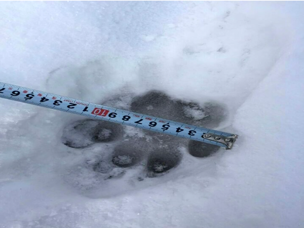 白石山林业局发现的疑似东北虎足迹照片。