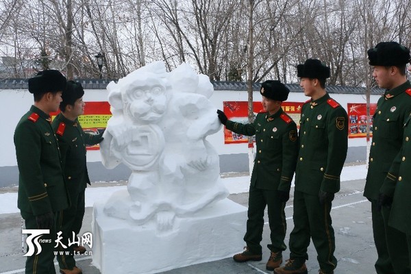 天山网讯(通讯员石晓坤 李铭骥摄影报道)连日来,驻守在祖国西北边陲的新疆公安边防总队阿勒泰边防支队的官兵们利用独特的冰雪资源天气优势,组织官兵开展警营特色冰雪趣味活动。官兵们分工明确,有的准备工具、有的铲雪、有的塑形、有的拿着实物照片对照,精雕细刻,有的上色,个个忙得不亦乐乎,几天功夫“边防丰碑”、“金猴贺岁”、“边防好样的”雷锋等造型各异的作品尽收眼底。