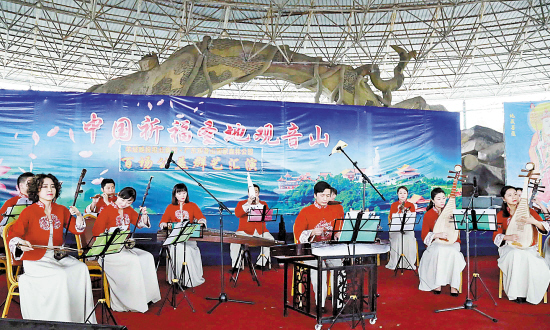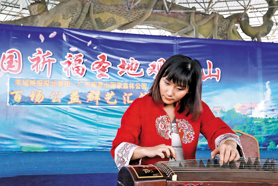 昨日的观音山充满着浓郁的传统气息。当天,观音山百场公益演出第八场顺利开演,19人的广东民族乐团“民乐合奏小分队”登上观音山,为现场观众送上《彩云追月》、《雨打芭蕉》、《喜洋洋》等多首经典民族音乐。此外,曹玉荣、缪晓铮、付娜等国家一级演奏员还携手陈冬、吴林原两位优秀青年民乐演奏家,带来了拿手的乐器独奏。一个小时的表演,让观众徜徉在民乐的魅力中意犹未尽。