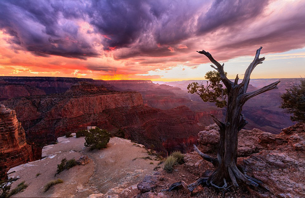 9月份亚利桑那州经历暴雨袭击后,大峡谷上空被紫色和粉红色笼罩。(网页截图)