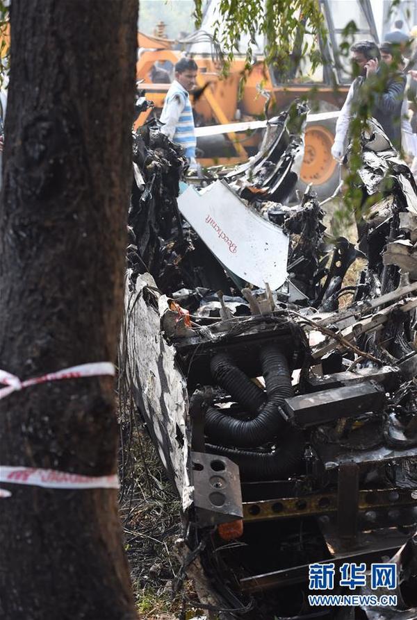 这是12月22日在位于印度新德里国际机场附近坠机现场拍摄的飞机残骸。印度安全部队官员22日说,安全部队一架飞机当天上午在首都新德里坠毁,机上10人全部遇难。 新华社记者毕晓洋摄