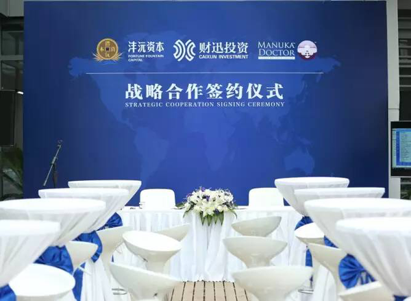 2015年12月9日上午,沣沅弘(北京)控股集团携手旗下企业北京财迅投资管理有限公司与新西兰Manuka Doctor举行了隆重的战略合作签约仪式。此举标志着沣沅弘集团正式进军健康产业,同时也标志着沣沅弘集团向着业务多元化、投资国际化战略再进一步。