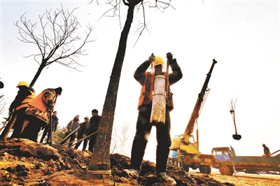 北青报记者昨天来到位于常营乡五里桥村的废弃造纸厂,这里曾经是出租大院,现在厂房已整体拆除,十几辆挖土机和造林工人正在空地上忙碌。