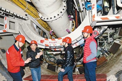 据了解,盾构机的基本工作原理就是一个巨大的圆柱体钢组件沿隧洞向前推进。“这个‘神器’不仅可以防止崩塌,厚厚的盾壳还能保护施工人员的安全,每天平均掘进12米。”岳琳辉说。