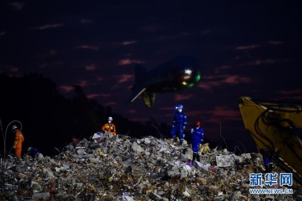 12月25日,救援人员和参与救援的机械在事故现场作业。国务院深圳光明新区“12·20”滑坡灾害调查组经调查认定,此次滑坡灾害是一起受纳场渣土堆填体的滑动,不是山体滑坡,不属于自然地质灾害,是一起生产安全事故。根据《生产安全事故报告和调查处理条例》(国务院令第493号)有关规定,经国务院同意,成立由安全监管总局牵头的国务院深圳光明新区渣土受纳场“12·20”事故调查组,由安全监管总局局长杨焕宁担任组长,立即开展事故调查工作,依法依规严肃追责。新华社记者毛思倩摄