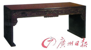 清 紫檀雕博古图画案