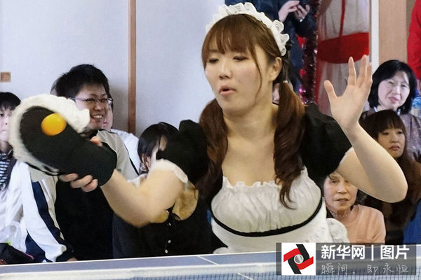 日本北海道真狩村的“真狩温泉”每年冬季举办拖鞋乒乓球大赛,吸引众多人前来参加,大赛采用拖鞋代替传统球拍,同时也欢迎参加者进行cosplay等角色装扮。图为拖鞋乒乓球比赛现场。