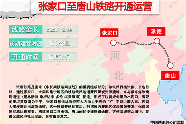新华网北京12月29日电(记者 黄玥)记者从中国铁路总公司获悉,12月30日,张家口至唐山铁路开通运营。