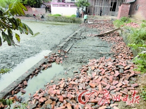 广州日报讯 (记者黄健源 通讯员杨荣湛、黎淑玲摄影报道)记者昨日从丹灶城管部门获悉,当地城管、国土及下安村委会联合行动,对丹灶金沙下安一处水塘周边村民违章填塘的行为进行了查处,并拆除乱搭建的围墙。