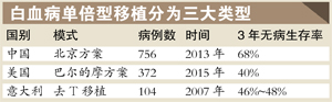 单倍型移植治疗白血病成功率优于化疗(77.5%比54.7%),也优于脐带血移植(73%比57%)