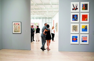 2015年7月17日,奥巴马亲密地拥着大女儿马丽娅一起看画展。