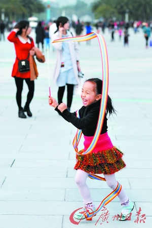 花城广场,小朋友挥舞彩带。记者莫伟浓 摄