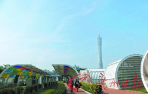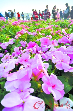 海珠湖鲜花满园游人如织。记者莫伟浓 摄