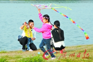 小朋友在海珠湖放风筝。记者莫伟浓 摄
