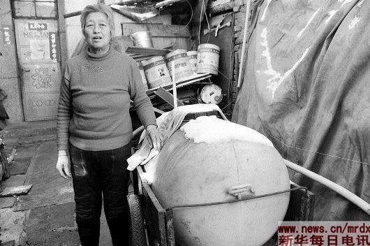 这是山西省左云县庙湾镇秦家山村村民用来拉水的桶(2015年1月21日摄)。每隔半个月,拉水车来到村口后,村民要自己想办法将水运回家里。新华社记者孙亮全摄