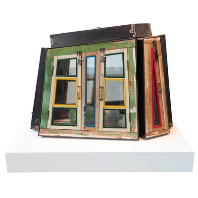 而这一次最新亮相的“剩余价值”虽是新作,但“三部曲”中的主角——日常物品依然如旧,这次宋冬主要用的是废弃的门窗。在展览入口处首先便呈现了两堆随意摆放的废弃门窗,杂乱却有秩序。事实上很难界定它们是否可以被称为艺术品,因为宋冬从废品站收回来时就这样随意地摆放在他的工作室内。