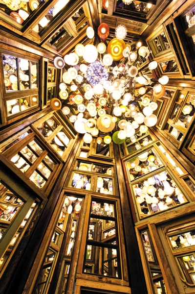 一般情况下,只有当观众参观完准备往回走时才会发现原来有扇门。打开一看里面又是另一番天地,辉煌的井内有无数的镜子,形成的却是繁华的虚空,“而当你走出画廊到了现实世界里,而那才是真正的繁华的虚空。”![]()