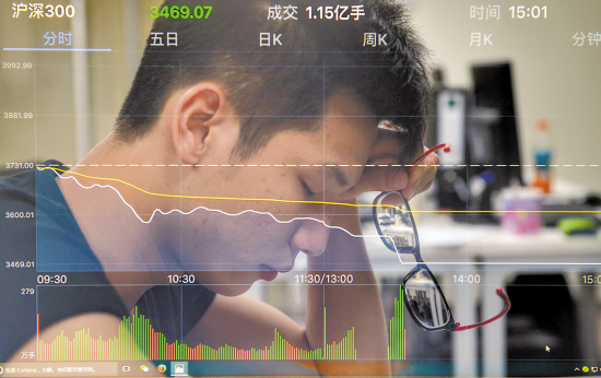 中国股民昨日首次经历股市“熔断”的考验 羊城晚报记者 汤铭明 摄