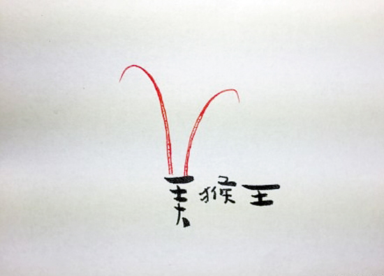 红色的两笔,有如美猴王的顶戴,突出了“美”字的“变态”美