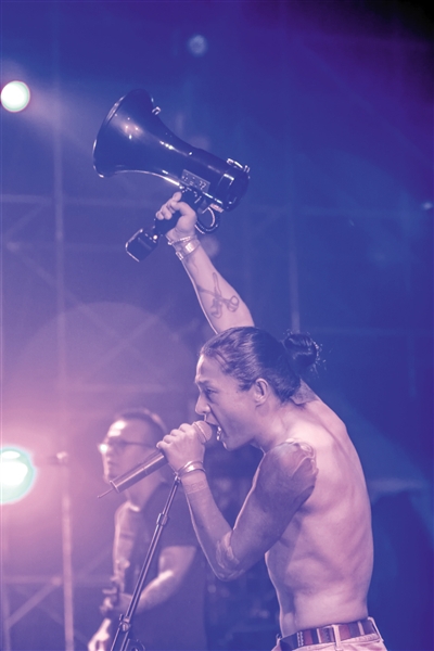 1月1日,深圳,痛仰乐队为“迷笛音乐节”压轴演出,几首歌后主唱高虎脱掉了上衣。