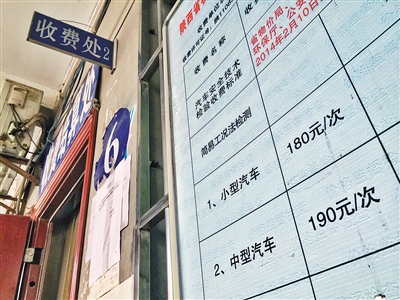 石化大道附近一家检测站小型车检测费仍为180元 记者 王健 摄