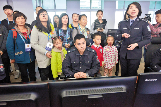 今年1月6日上午,广州警方举办“微友进警营之探营110”活动 羊城晚报记者 汤铭明 摄