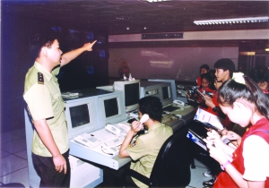 接下来,便是岗位业务技能系列强化培训。薪火相传“传帮带”,师兄师姐手把手,从110报警服务台的接处警操作规程及细则开始,到无线对讲电台、对讲手台操作规范和要领入手。那时还没有电脑,只有广州市公安局总值电话、110电话台和无线电台“三件宝”,其中110报警服务台使用的是“镇江牌”电话总机转接台,一个键中有“红灯”和“绿灯”,报警电话来了,“红灯”闪烁,往上按一下便接通,变为“绿灯”时便开始接听报警。处警方式一是电话迅速转接到所属分局、派出所,二是接听完后,再拨打电话到所属分局、派出所指令出警,三是紧急警情立即电台通传发出指令。接处警过程中,必须对发案地址与所属派出所管辖、电话作出第一反应发出准确指令,并用笔快速登记在表格上。接报、指令、反馈、登记各个环节,均需达到快速、准确、规范的要求。