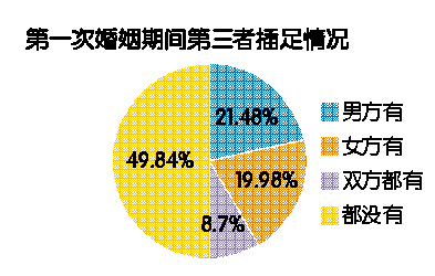 “男人爱出轨,女人爱插足”,这已是大众对现在婚姻生态的普遍印象。但事实到底如何呢?今年的婚恋状况调查结果显示,婚姻破裂的家庭中,确实有超过一半是因为第三者插足。而在婚姻中出现第三者的情况中,男、女方占比相当,各占20%,而双方都有出轨的情况也不鲜见(近10%)。所以单方面指责男性出轨显然并不公平,女性出轨的情况也并不少。