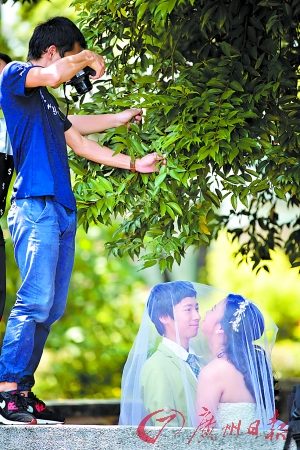沙面,一对新人拍婚纱照。(资料图)记者陈忧子 摄