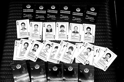 警方称现在临近年关,一些嫌疑人可能回家过年,抓获嫌疑人的几率较大。如果有人发现扑克牌通缉令上的嫌疑人,向警方提供有效信息的,警方一旦抓获嫌疑人,将向举报人提供2000元奖励。