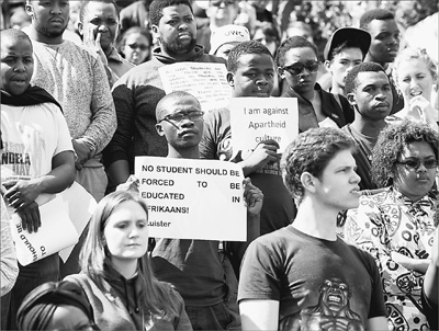 当前,南非种族隔离时代的历史与结构性遗产仍未完全消除,社会模式与偏见也扩大了种族之间的隔阂。图为去年9月,南非开普敦大学生示威抗议种族歧视。
