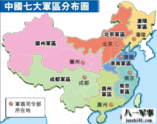 现有各大军区示意图 图片来自网络