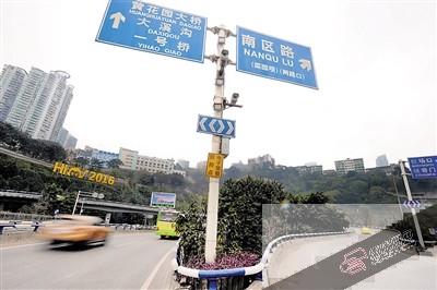 公式▲昨日,渝中区交巡警智能交通指挥中心,高清摄像头拍摄到车辆违法变道画面。 公式?昨日,石板坡桥头高清摄像头监控车辆违法变道。本报记者 雷键 摄