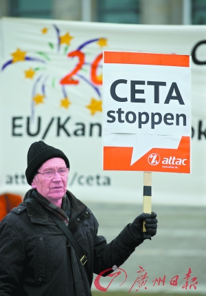 4日,反全球化组织成员在柏林举行反对“综合性贸易经济协议”的抗议活动。