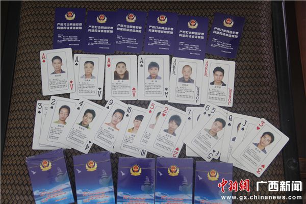 近日,广西宾阳县公安局重拳出击打击网络犯罪,印刷了1万五千副扑克牌对248名网络犯罪分子进行通缉,还出台系列通告,对网络犯罪涉案重点区域进行停网核查。