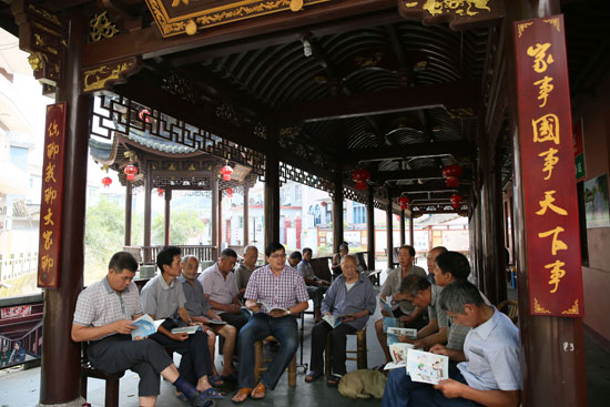刚开始,只有村干部会站在祠堂门口那两只石狮子旁交谈。慢慢地,一些党员和村民代表也会围在石狮子两侧,议论村里的事儿。再往后,村民有事没事就会聚在石狮子前,站着、坐着、聊着、闲逛着。河道治理、污水处理、道路改造工程,全是大家讨论的内容。