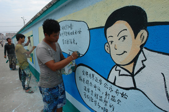 宁海县跃龙街道东方村正在绘制36条漫画。