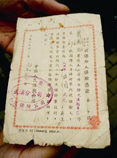 昨日,新洲凤凰镇的曹先生反映,他在翻新家中老宅时,在一本旧书中发现一张爷爷留下的500万元人寿保单,距今已有64年。