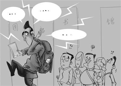 其实,现实生活中这种“旁若无人”的现象多了去了。记得有一次在学院图书馆查资料,许多同学在安静地看书,偶尔有同学轻声说说话,也影响不到别人。但是这时书架那边却有较大的电话铃声响起,铃声过后,让人更不爽的就是机主毫无顾忌地大声讲电话,电话内容是在约“中午和谁谁吃饭”的事,那声音,那动静,就和在自己家里或在车水马龙的大街上一样“旁若无人”。我最初也和学生们的反应一样,期盼着该男子尽快挂断电话。可过了好几分钟,那人还在不停地大声讲着,而且并没有要停下来的迹象。我实在忍不住,走过去说了几句,“请你讲电话声音小点儿好不好,大家都在看书呢。”男子看了看我,没吱声,把书放书架上后打着电话走了。