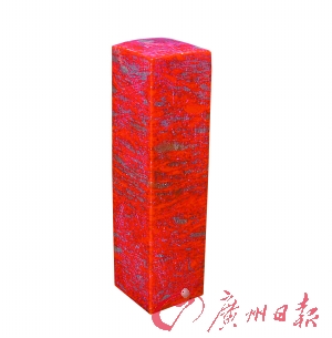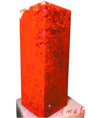 但就印章石而言,桂林鸡血玉因为硬度太高,确实不能和昌化鸡血石相比。“鸡血石的硬度适中,篆刻家照着自己的心性,很容易就可以改变雕刻的内容和字体。而鸡血玉必须使用机械,篆刻家发挥的余地没那么大。所以要因材制宜,各自发挥自己的功用。”周允德表示。