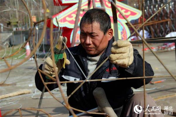 人民网十堰1月18日电 1月17日下午,位于湖北省十堰市茅塔乡千菊百卉园的迎春花灯制作基地,工人们正在紧锣密鼓地进行花灯扎制工作。