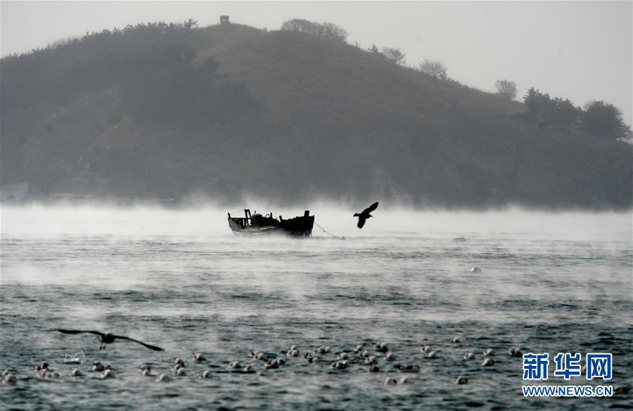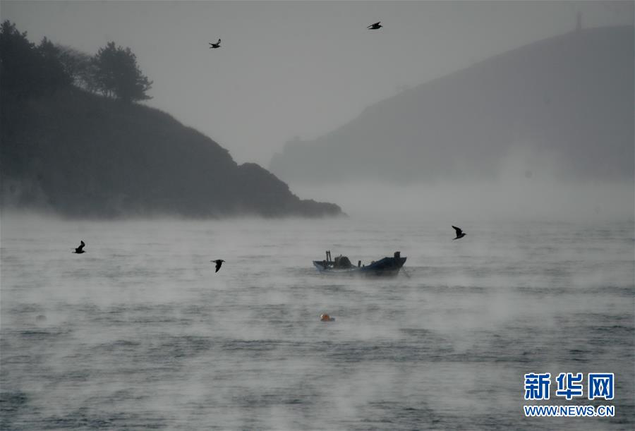1月18日,大连付家庄海域的出现“浩气”奇观。近日大连持续低温,由于海水温度高于空气,海面蒸发的水气遇到冷空气后迅速凝结为冰晶,形成了“浩气”奇观。 新华社发(吕文正摄)