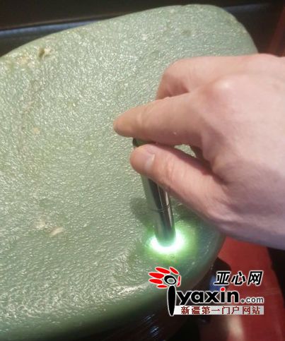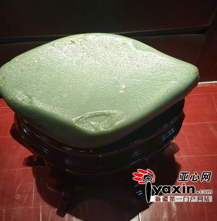 亚心网讯(记者 雅心)近日,一位新疆藏家向记者展示了他收藏的一块形如元宝的罕见和田玉象形奇石。据介绍,此玉,重51.2千克,尺寸45cm*27cm*36cm,形如巨大元宝,始于“万山之主”悠悠昆仑山,历经天地沧桑变迁,风霜雨雪之侵蚀,裸露于高山之巅,崩落于河道之中,经河水冲刷翻滚,荡涤了浮华及瑕疵,精光内蕴,肤如凝脂,终成美玉,出自和田玉龙喀什河;体型硕大肥美,通体一色,形成翠绿色和田玉籽料。