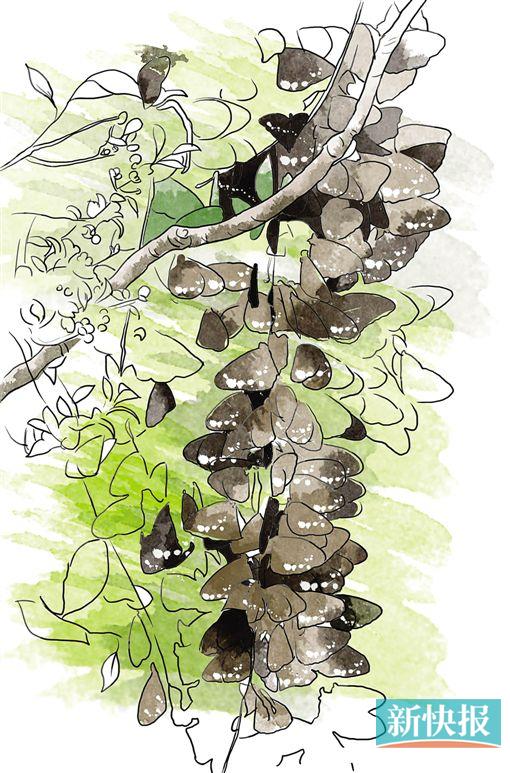 2012年,同一时间在同一个地方,陈锡昌目睹了万蝶齐飞的景象,在大约300平方米的山谷中,聚集了超过3万只蝴蝶,它们只是路过此处补充能量,作十天停留后继续南迁到更温暖的地方过冬。“候鸟很多人都知道,但是候蝶知道的人不多,蓝点紫斑蝶是华南地区常见的蝴蝶,以有毒的夹竹桃科植物为食,体内带有毒性,很少被捕食,成虫存活的时间有3-4个月,并且它的翅膀坚韧,每年深秋开始,它们就成群南迁。”陈锡昌说,在中国台湾地区和国外,有关斑蝶迁飞的研究已经进行了几十年,起点、路线、终点均已查清,据记录观察,一只小小的蝴蝶竟然可以迁徙几千里,“台湾曾为此发动3000名志愿者参与研究,为了保护迁飞的斑蝶,政府部门还会在一定时间段对斑蝶迁飞途中经过的高速公路进行围蔽。十年前,我们已经开始追踪广东沿海斑蝶迁飞状况,但是只获得零星记录,很多问题尚待答案。”