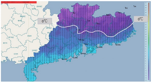 据介绍,历史上1999年12月23日现寒潮天气,广州市区最低0℃,粤北-6℃,广东全省所有站点都在5℃以下。