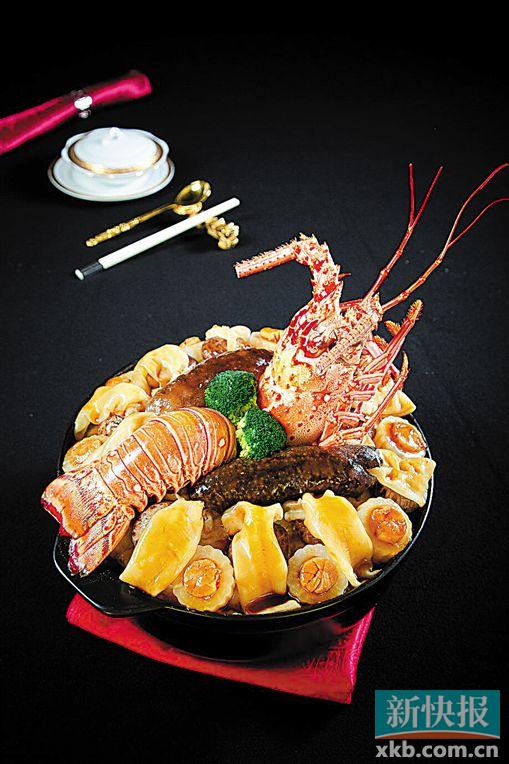 同样是老牌五星级酒店的中国大酒店,推出的新年盆菜乃霸气龙皇盆菜,选用一斤半的全只澳洲龙虾加入盆菜食材,霸气侧漏。