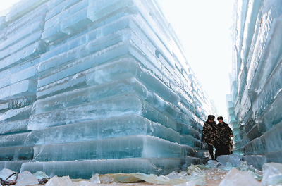 1月20日,辽宁营口公安边防支队北海边防派出所“海冰巡逻队”在码头对渔民储存冰块场地进行检查。该支队成立10个巡逻队,对海港、码头开展巡逻,排查隐患,防止海冰阻塞航道、损坏船只及海上设施、影响水产养殖。